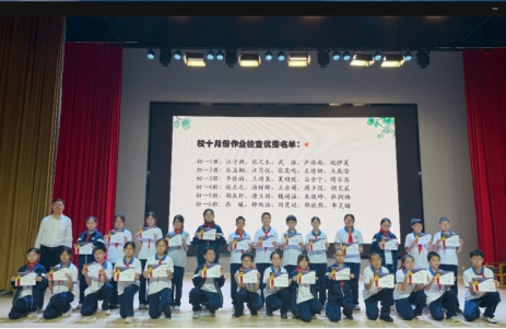 随后,大会对十月份在纪律、卫生、学习、文明礼仪等方面表现突出的集体与个人进行表彰。每个班级评选出“守时小标兵”、“卫生小达人”、“专注小学者”、“作业模范星”、“悦憩文明奖”,由蔡春来副校长以及年级组长高菲老师为获奖代表颁发奖状,现场掌声热烈,气氛庄重而温馨。