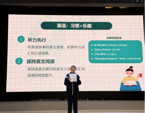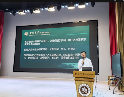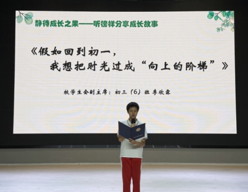 来自校学生会副主席初三(6)班的学生代表李欣霖同学以《假如回到初一,我想把时光过成“向上的阶梯”》为题,分享自己三年来的成长经历。她回顾了初一时的迷茫与适应,初二时的坚持与突破,再到初三的自信与从容。她以“目标、习惯、心态”三个关键词总结成长经验教训,提醒学弟学妹:“初一是打基础的关键期,习惯决定未来。”她建议同学们尽早规划、踏实积累、积极面对困难。真挚动人的讲述,让在场学生深受启发,不少同学表示“看到了未来的自己”。