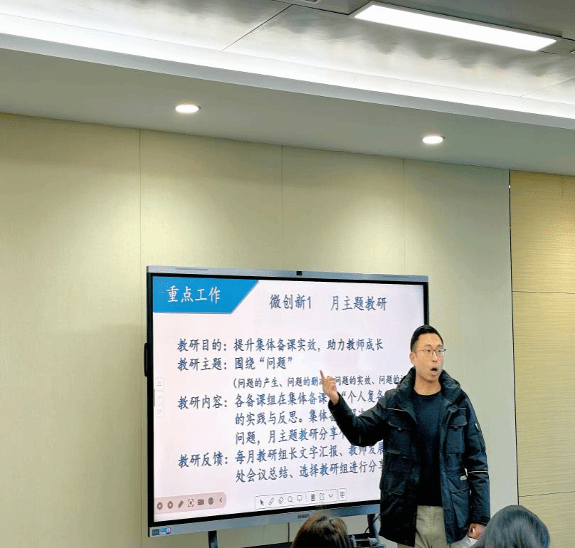 新学期伊始,我校各项工作有序开展。3月3日,课程教学处和教师发展中心召开2025-2026学年第二学期教研组长、备课组长工作会议。会议由黄飞主任主持,陈哲主任、赵哲主任及卢校先后发言,全体教研组长、备课组长参会。会上,陈哲主任先解读了教学处学期工作计划,明确学期计划提交、开学视导课、常规检查、推磨课等核心工作,细化教案撰写、集体备课等具体要求,同时布置各备课组教学常规安排。赵哲主任以“微创新”提升工作实效为主题,介绍教师发展处工作,明确月主题教研、三级备课审核、录播课评价改革及第三届读书节等重点任务。最后卢校作总结发言,肯定上学期教研组及备课组在教学研究及质量、教研成果等方面的成绩,剖析教学工作现存问题,围绕课改新形势提出深化教学改革、强化教研引领等工作要求,为新学期教学提质增效、教师专业成长指明方向。