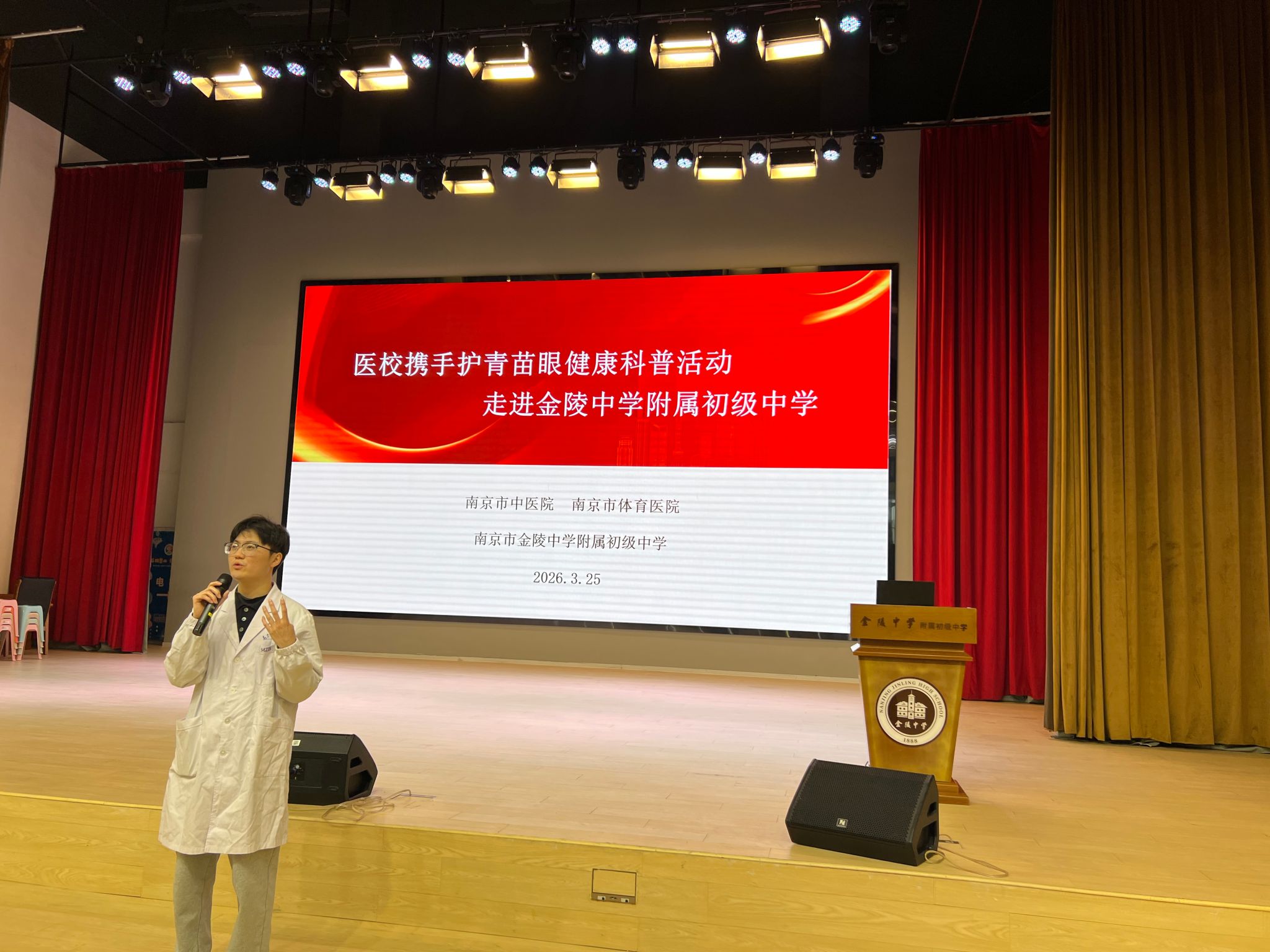 讲座中,南京市中医院的杨老师聚焦初中生用眼特点,针对学业压力大、近距离用眼时间长、电子产品使用频繁等实际问题,详细讲解近视形成原因、早期信号及危害。重点普及“一尺一拳一寸”读写姿势、20-20-20 护眼法则、充足户外锻炼、规律作息饮食等核心防控知识,用贴近校园生活的案例、通俗易懂的讲解,帮助同学们掌握科学护眼方法,纠正不良用眼习惯。